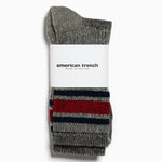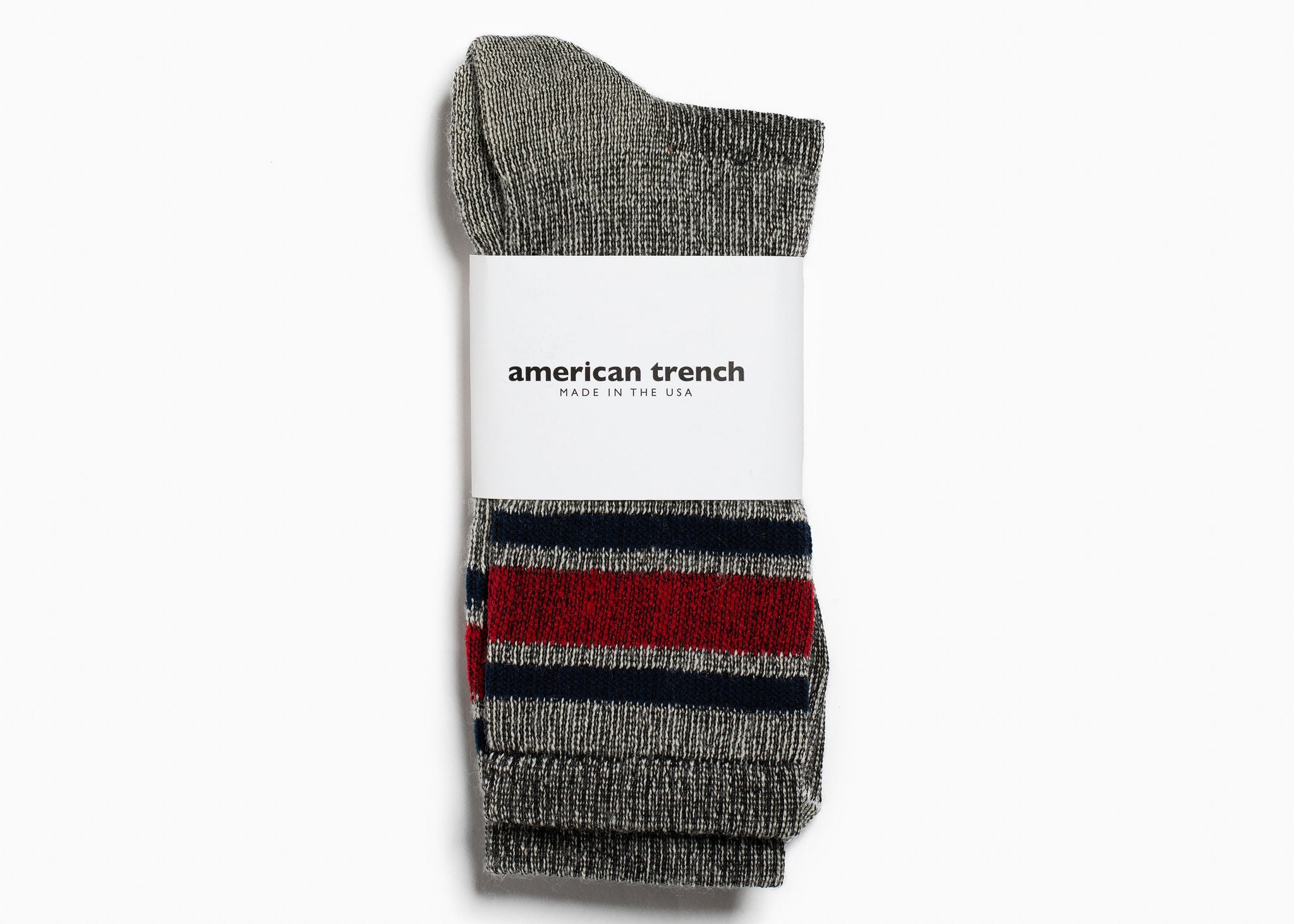 Whatever your activity is, we have the Merino Activity Crew to meet any need. This is a sock you can wear for days. We're lucky to use American-sourced merino wool that's soft, warm, and moisture-wicking, making it also inherently anti-bacterial. The interior of the sock is terry-knit with big loops of soft yarn that create a padded layer for comfort. This is a rugged boot sock, but it's not too thick to be in a standard shoe, too.