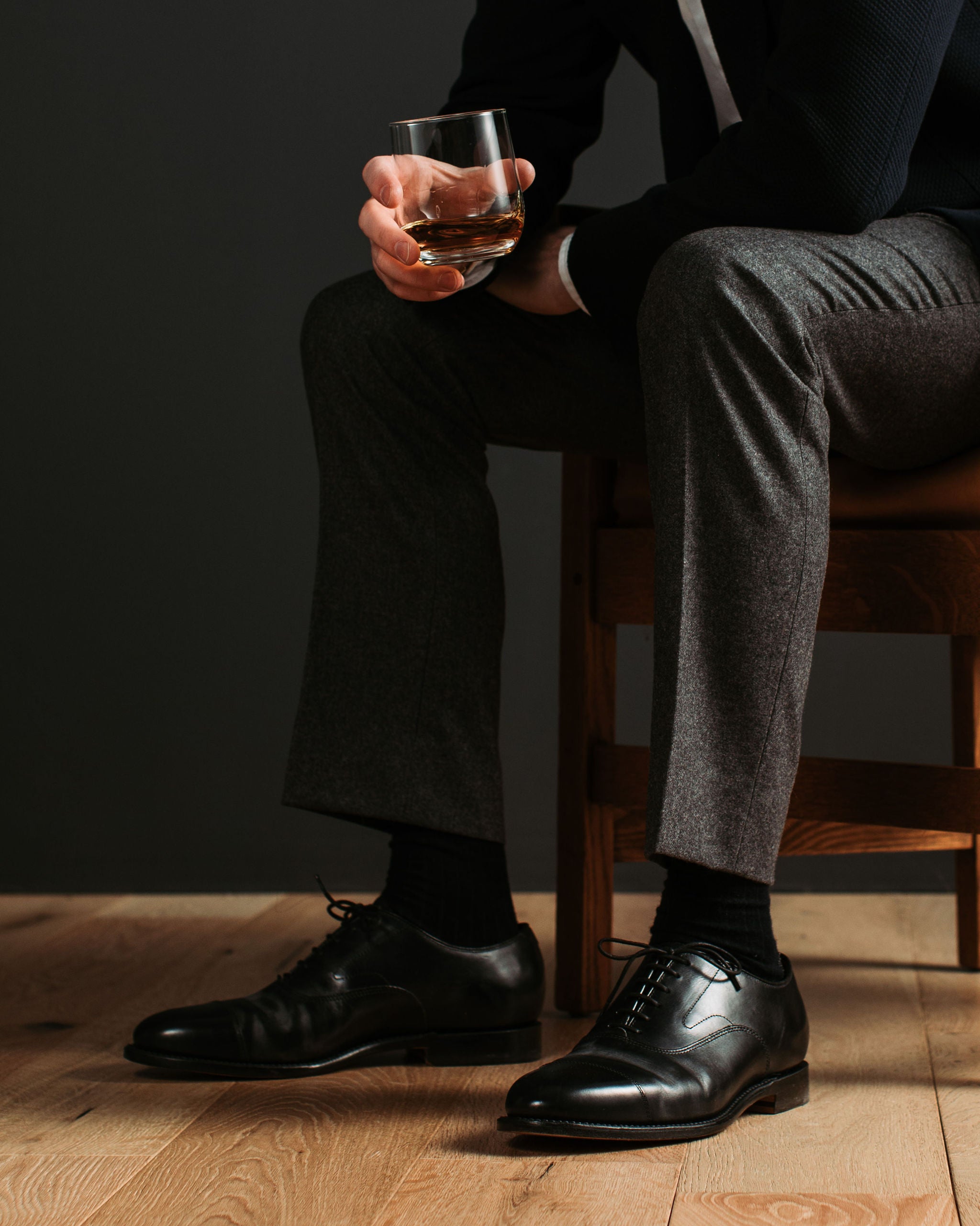 A Cap Toe Oxford, also referred to as a Straight-tip, is the classic dress shoe suitable for all occasions. The idea behind this model was to create a last that was comfortable to wear over a long day. It is common for the Oxford shoe to be labeled as a "difficult fitter" due to the last shape and a narrower toe box.