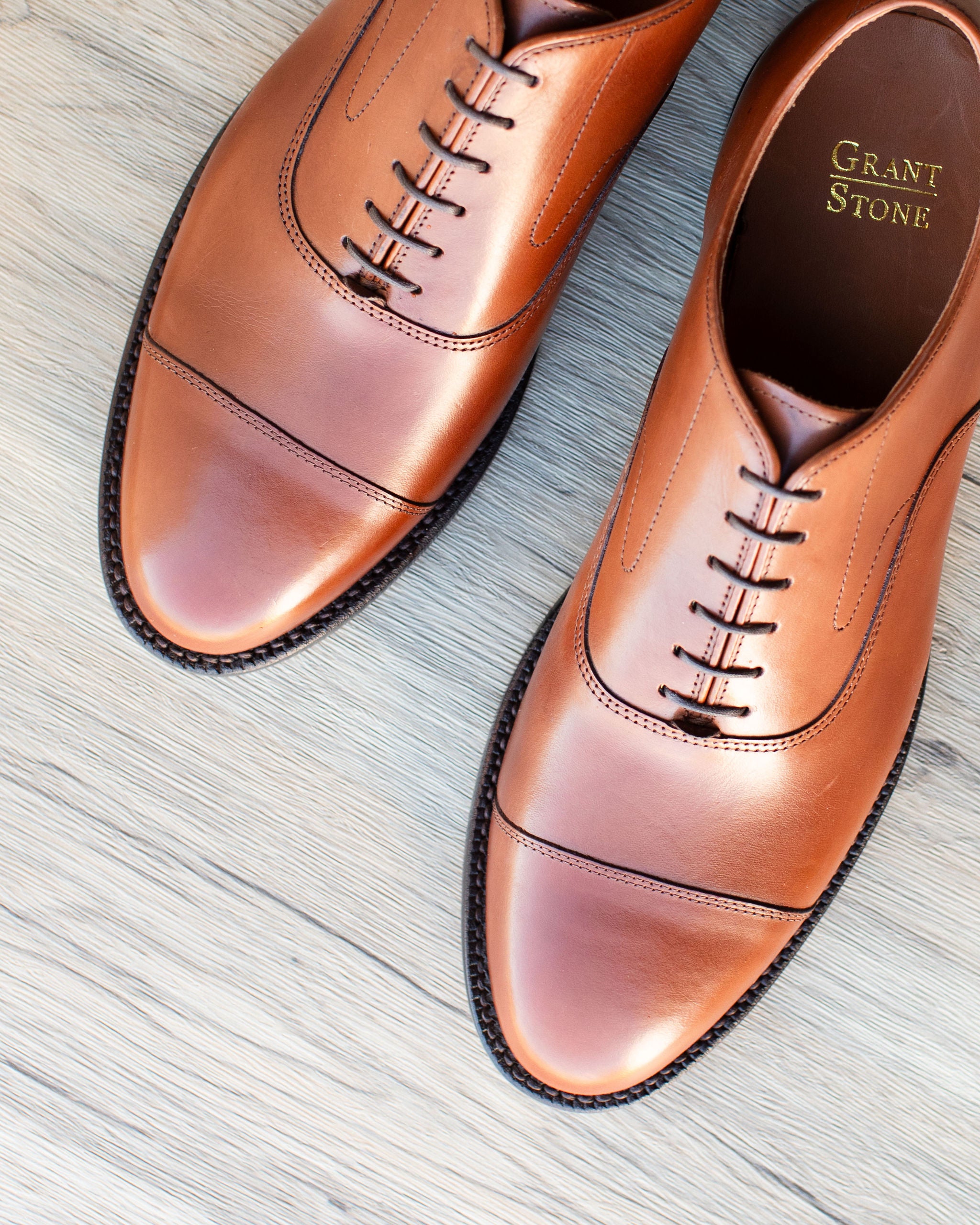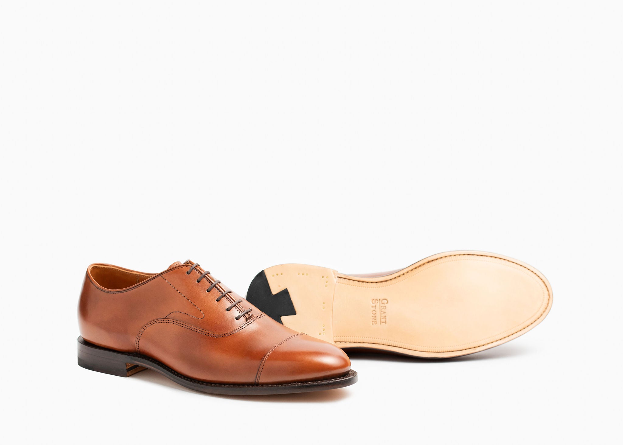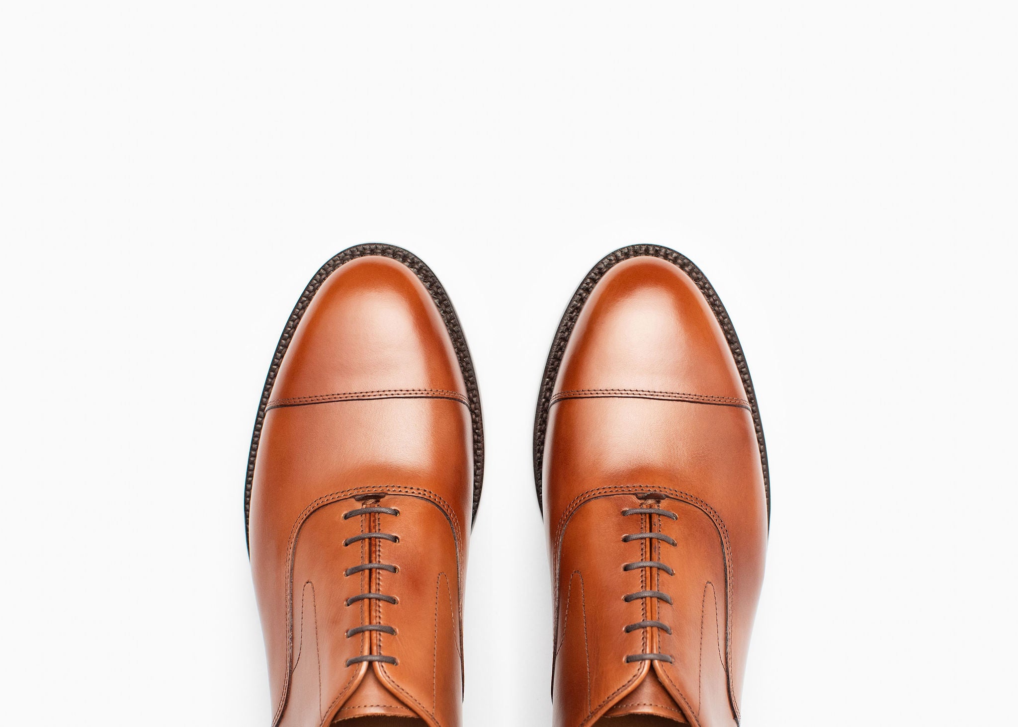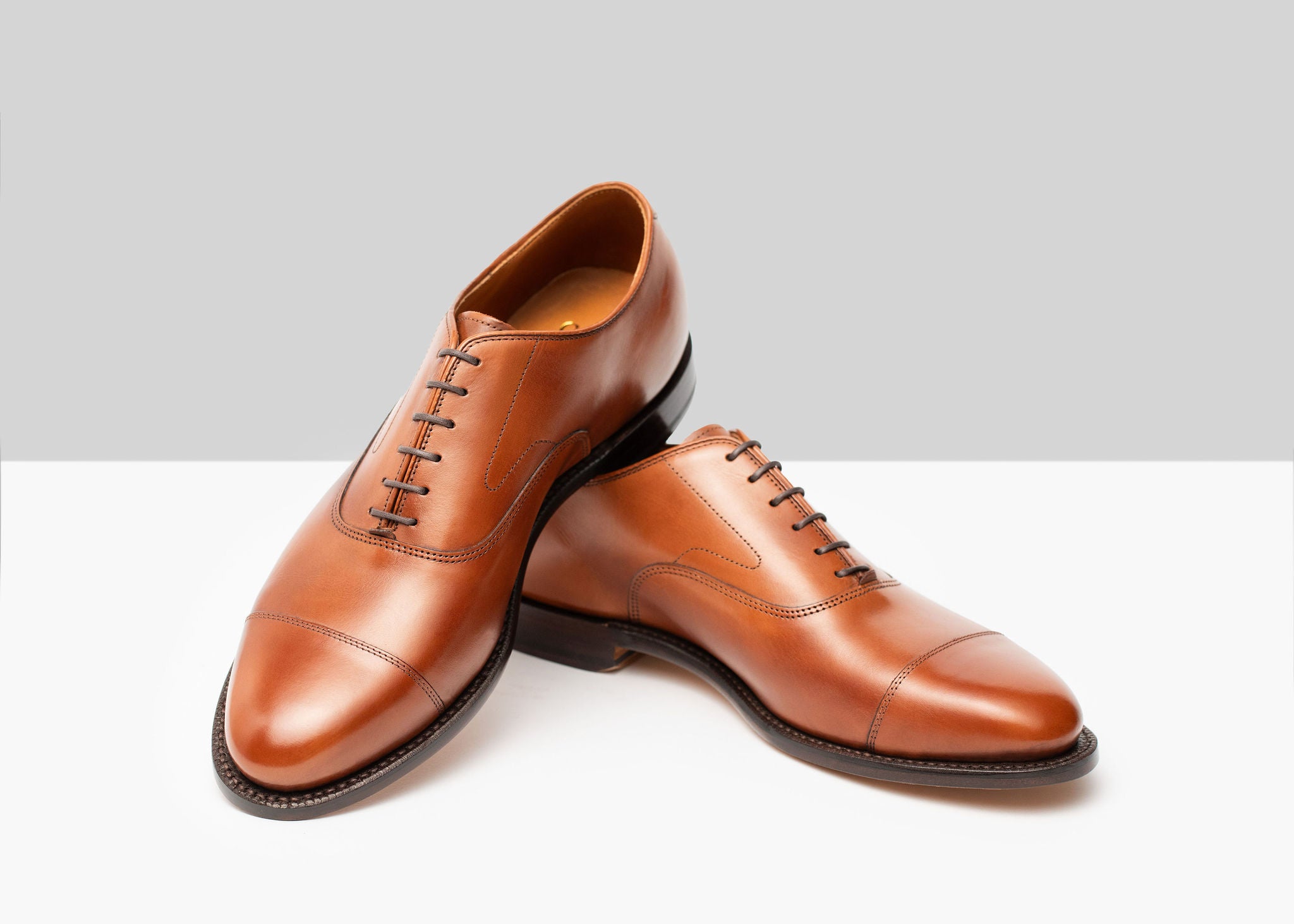 A Cap Toe Oxford, also referred to as a Straight-tip, is the classic dress shoe suitable for all occasions. The idea behind this model was to create a last that was comfortable to wear over a long day. It is common for the Oxford shoe to be labeled as a "difficult fitter" due to the last shape and a narrower toe box.