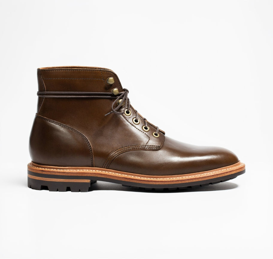 The word “diesel” doesn’t exactly remind us of something flashy but instead of something built for strength and longevity. This is our rendition of the basic plain toe boot pattern—made with nothing but proven leather uppers, lining, and insole.