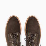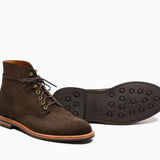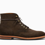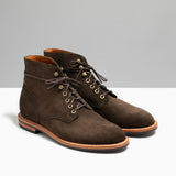 What exactly is loden? The color's name comes from the German Loden, a course thick woolen fabric. While in the original German, Loden does not necessarily refer to a color, due to the wool of the mountain sheep, the color tends to be an earth color—somewhere between green and brown. The Loden suede paired with dark chocolate welts and edge stain makes for a sharp, plain-toe boot. The dark Loden suede combined with natural welts and edge stain offers contrast without being too loud. The brass eyelets complement the two colors, pairing nicely with the welt.