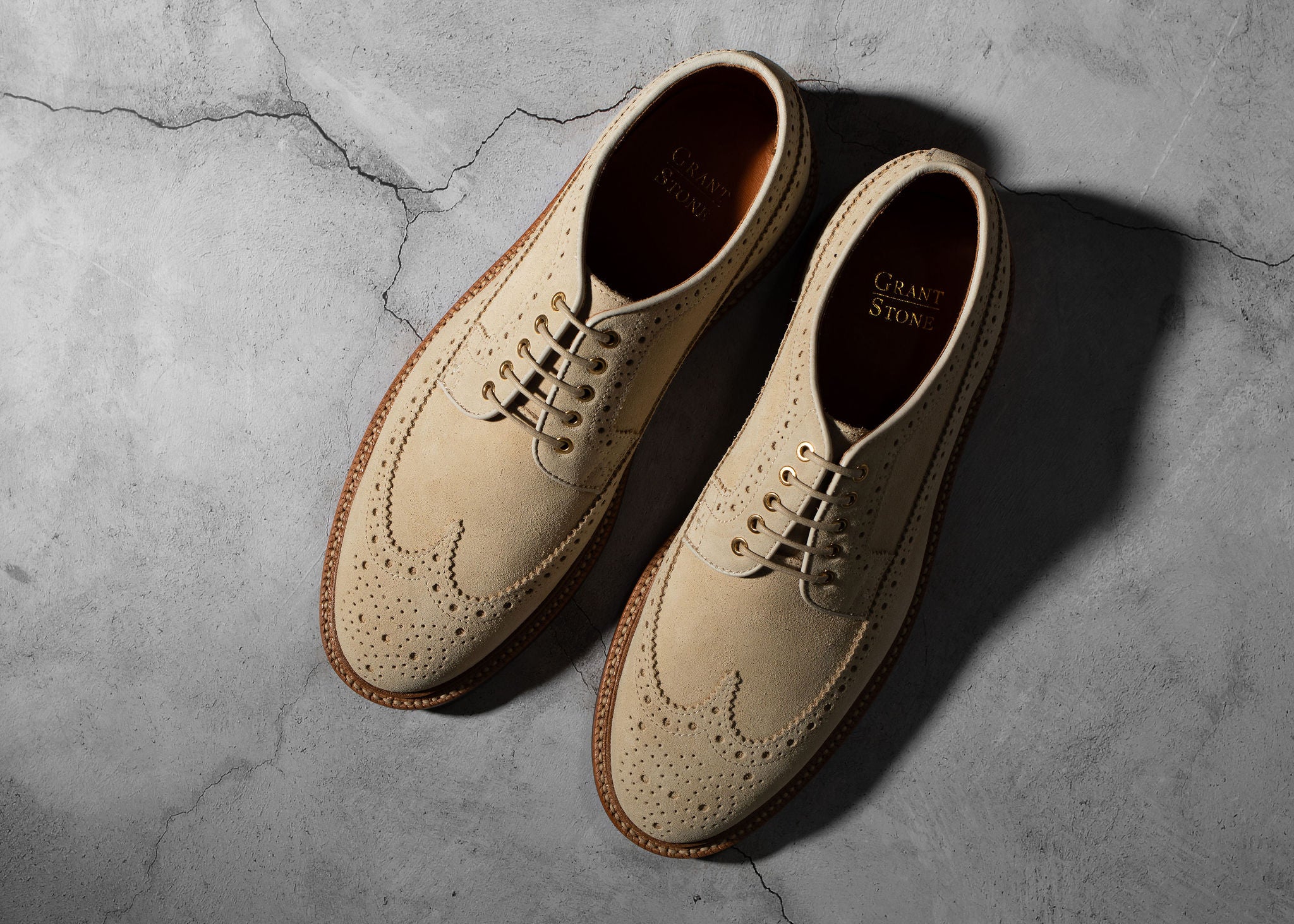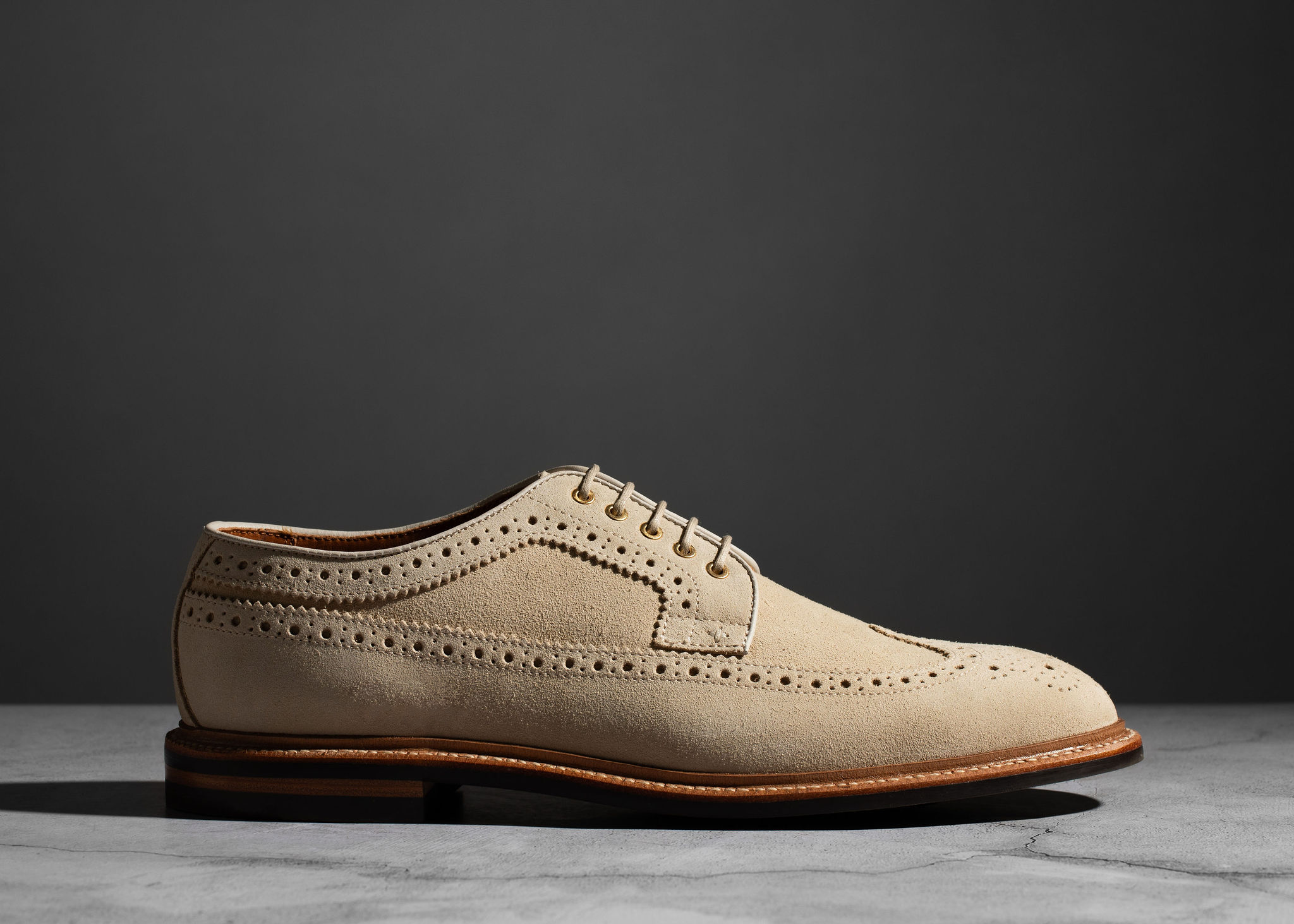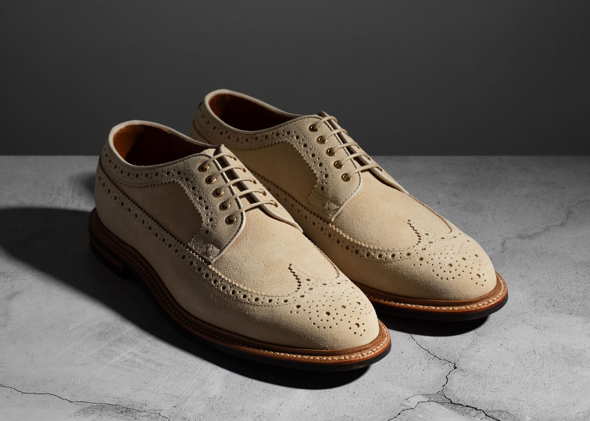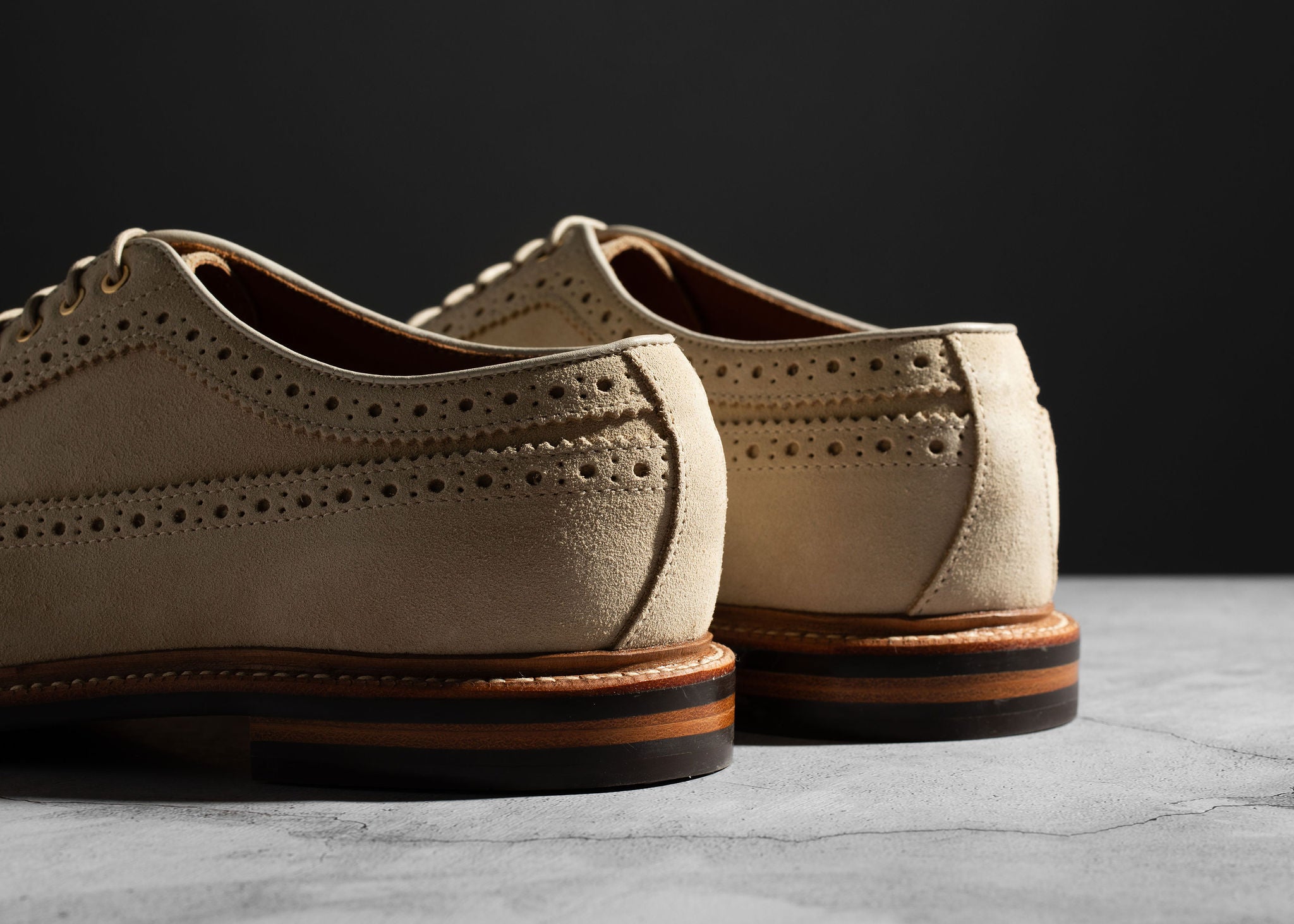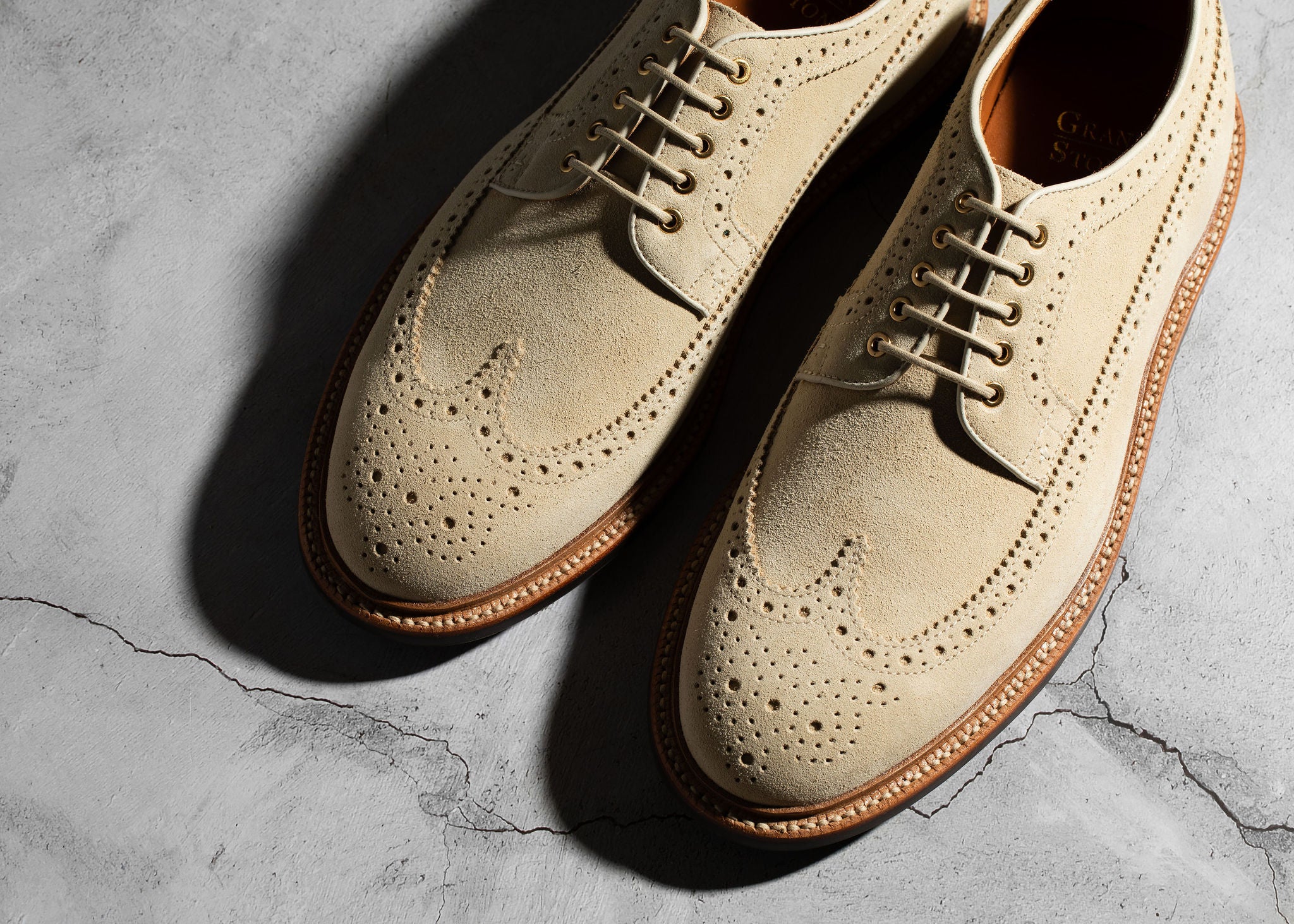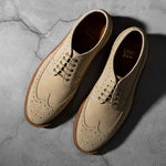 Crafted from Charles F. Stead's water-resistant Repello calf suede, these Safari Suede Longwing shoes are the perfect blend of rugged durability and classic style. The timeless longwing brogue design features intricate broguing, sturdy laces, and a micro stud outsole, making them a versatile and practical choice for any occasion. Whether for a casual outing or a more polished look, the combination of durable suede and a sophisticated silhouette ensures these shoes will be a lasting addition to your wardrobe.