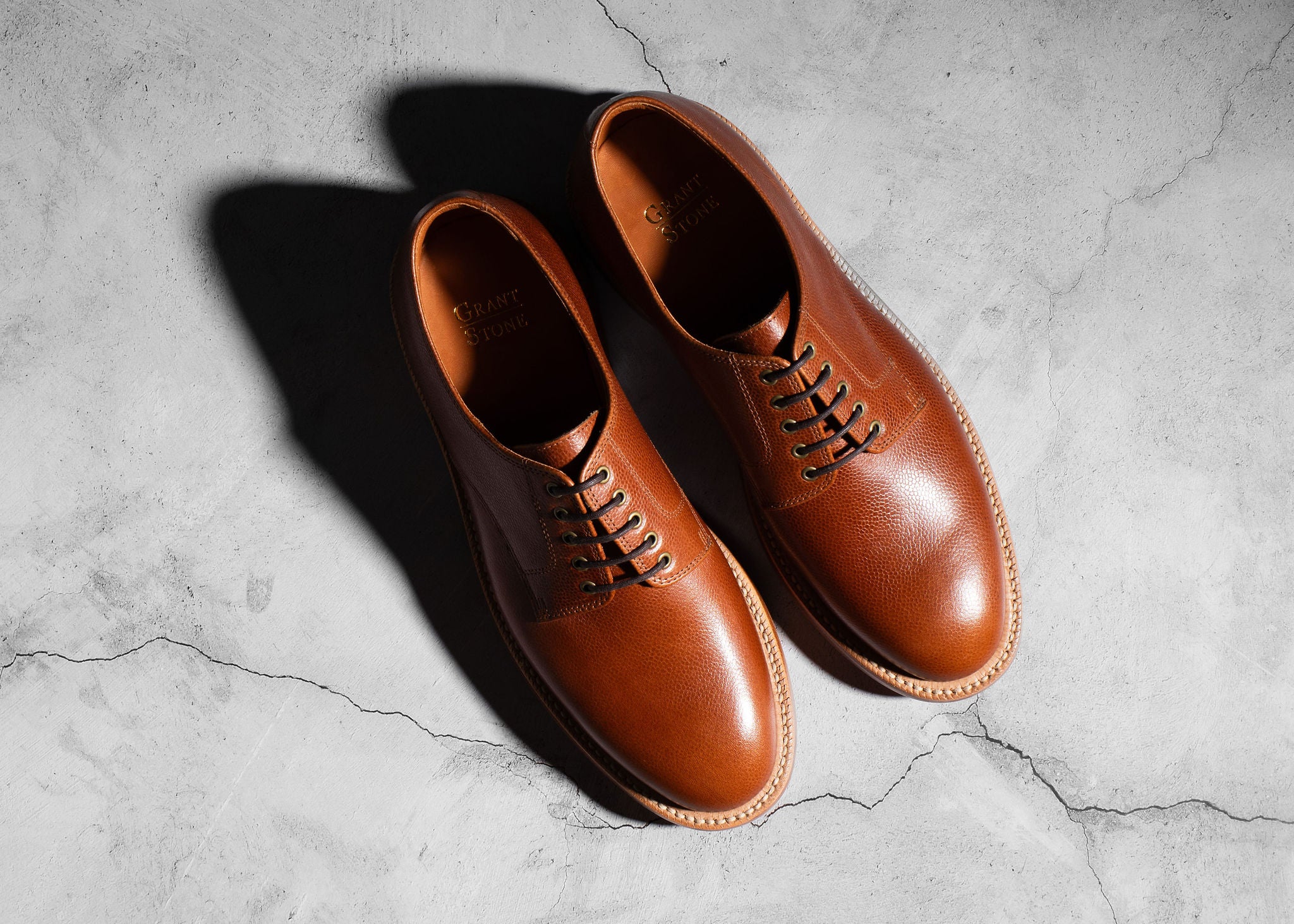 Crafted from Horween’s Autumn Ridge Glacé Latigo, this Grant Stone Country Derby combines a rugged grain with a refined silhouette, offering a versatile shoe that’s as comfortable as it is stylish.