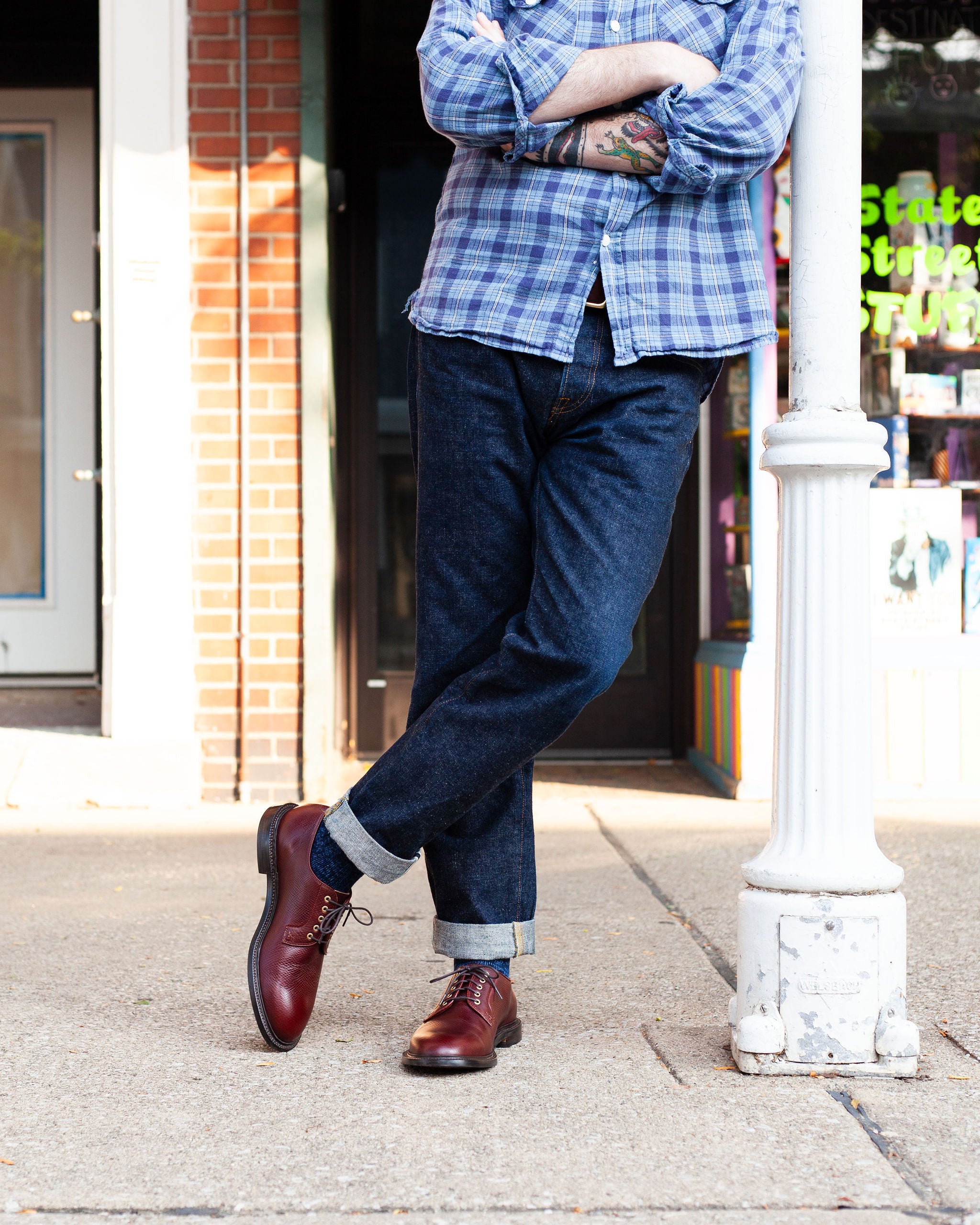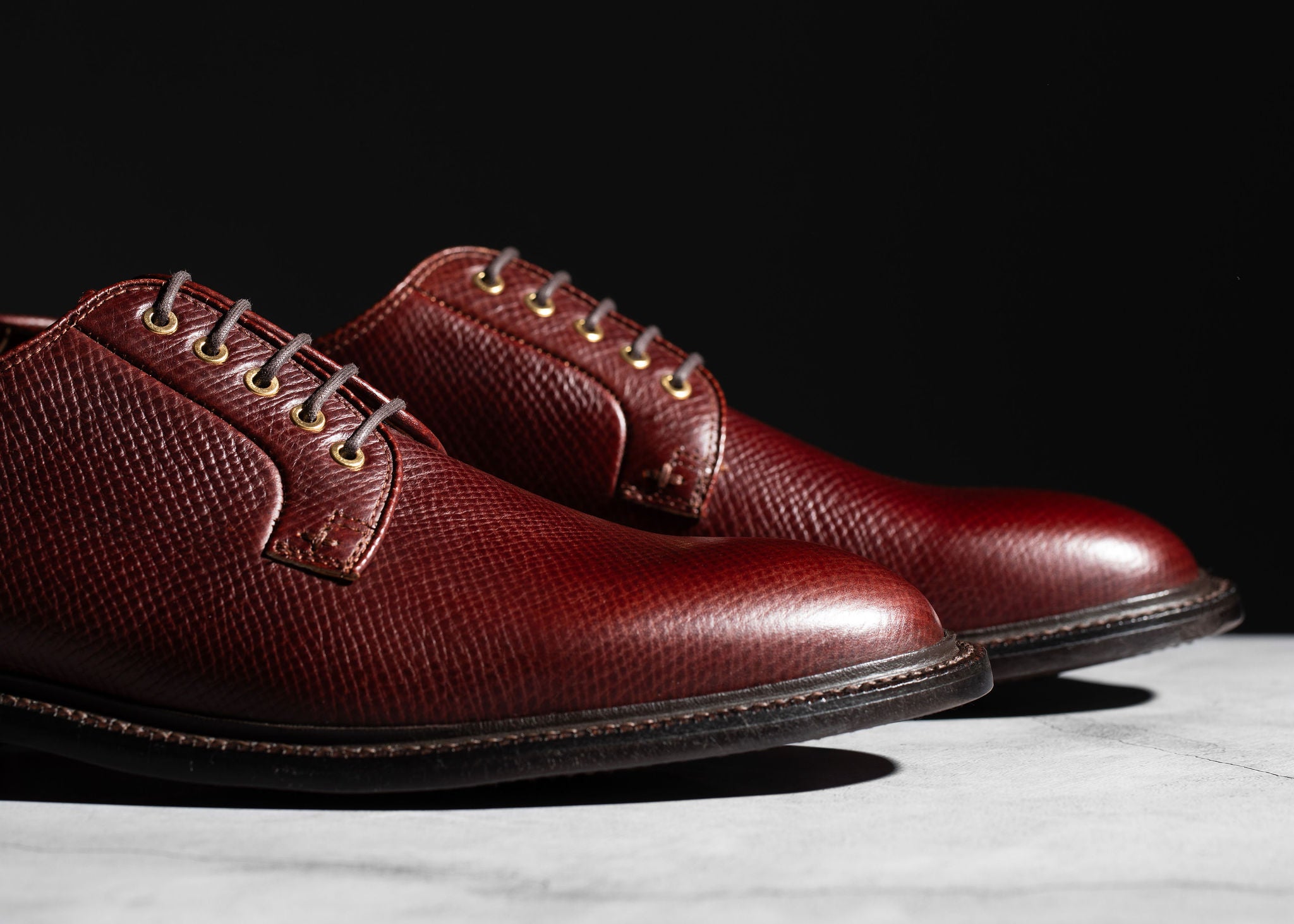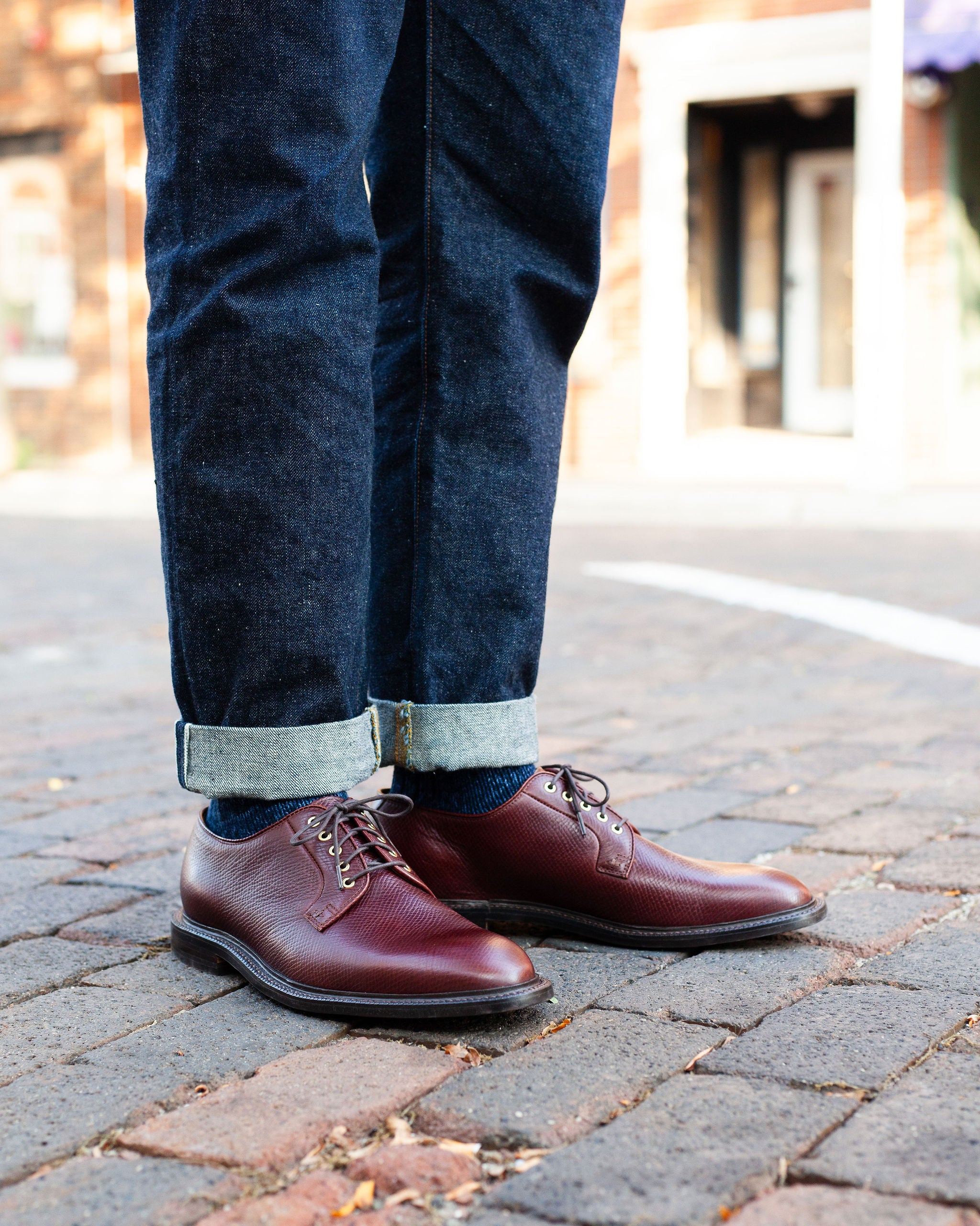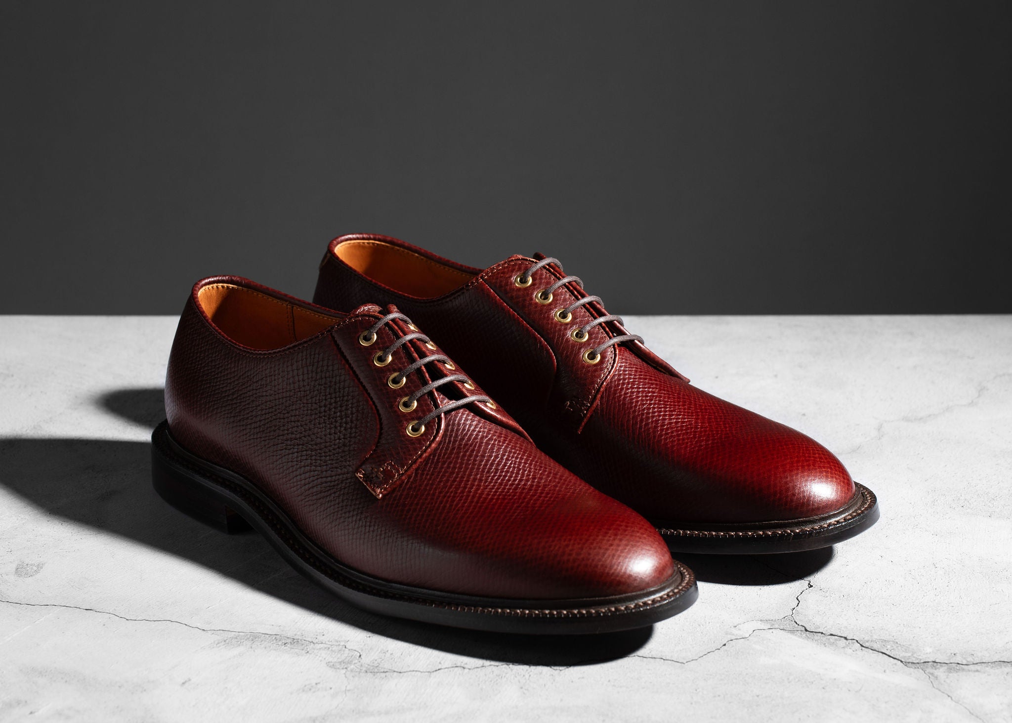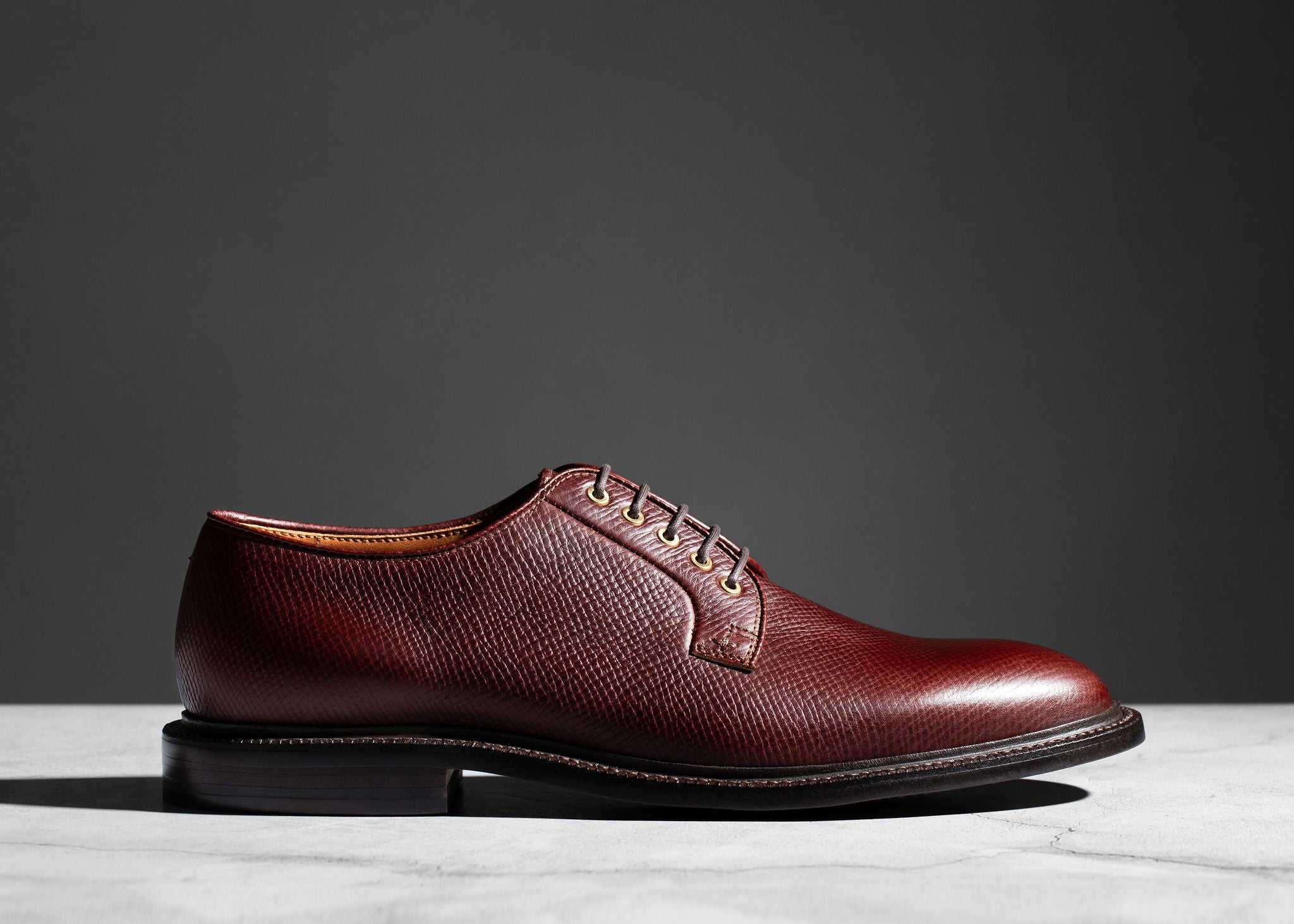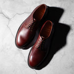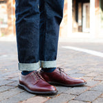 The Plain Toe Blucher embodies the perfect smart-casual footwear. Bluchers feature an open-lacing system with a single-piece, one-cut vamp. These two features separate bluchers from Oxfords, with their closed-lacing system, and Derbies, which have quarter-panels connected to the vamp. These differences produce a sleek and stylish pair of Goodyear-welted shoes that are easily wearable at work or a night out.