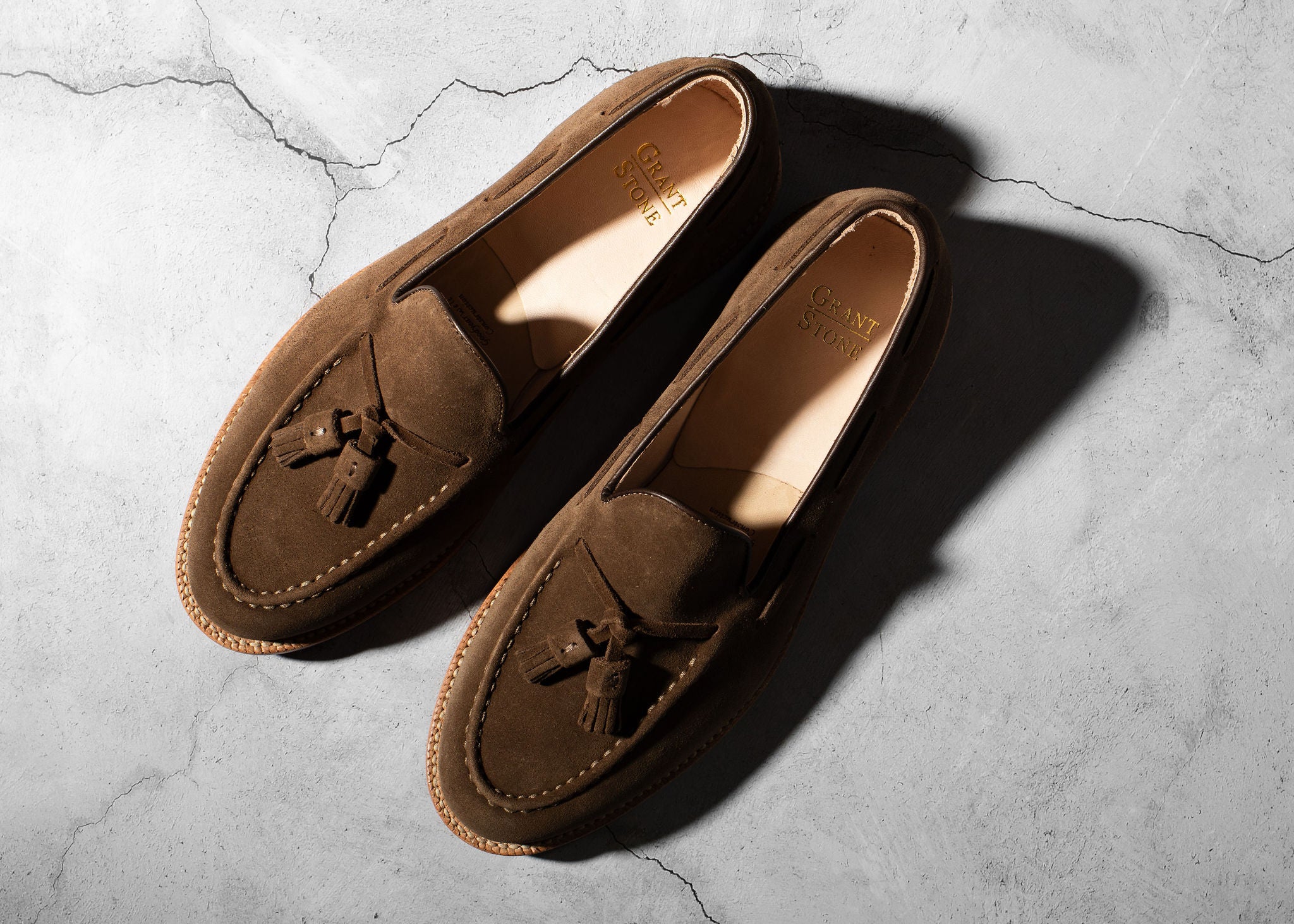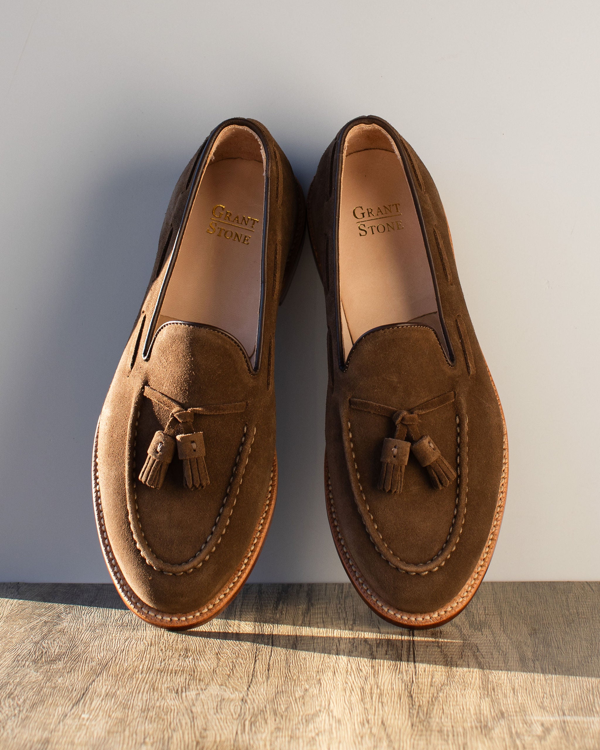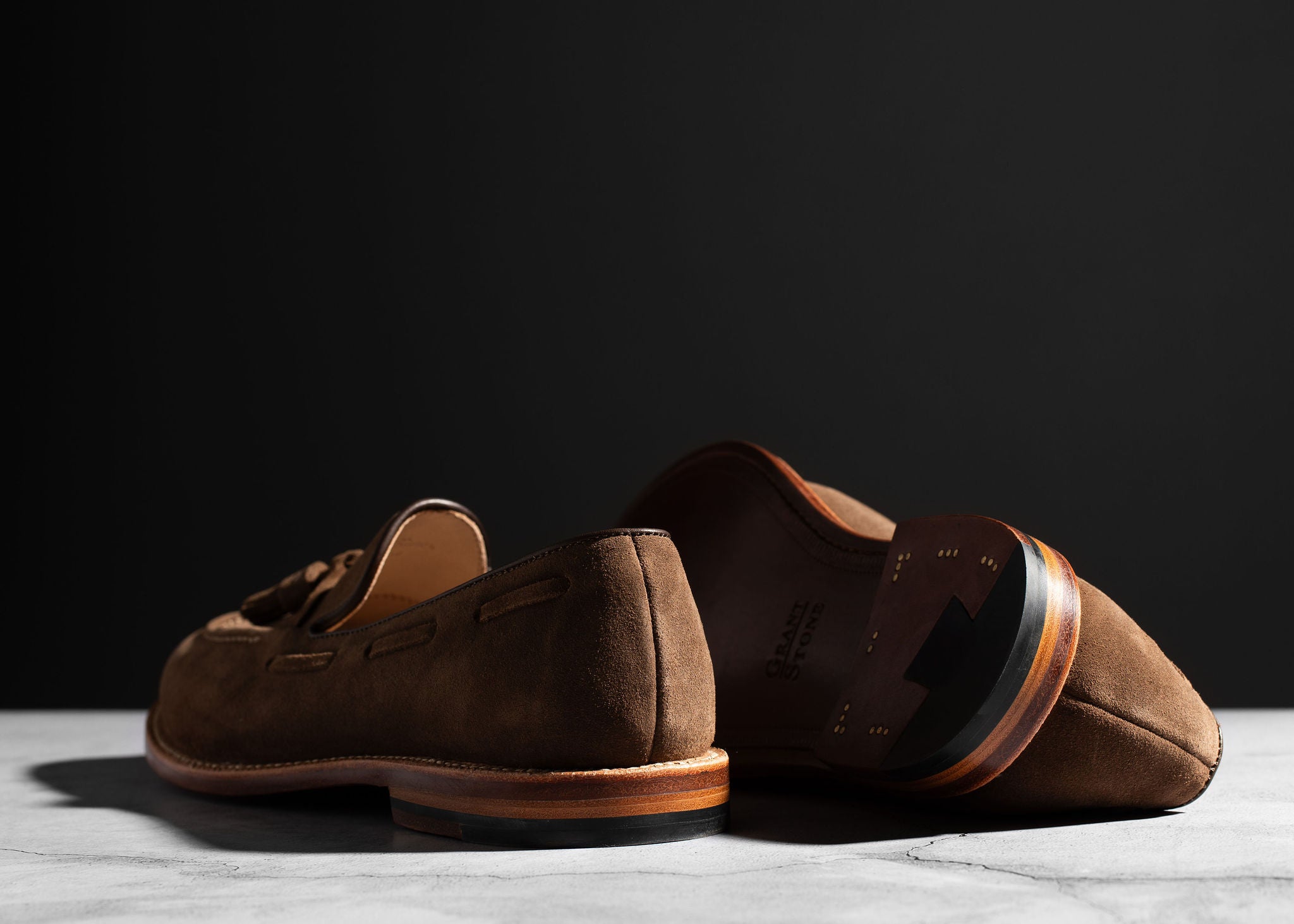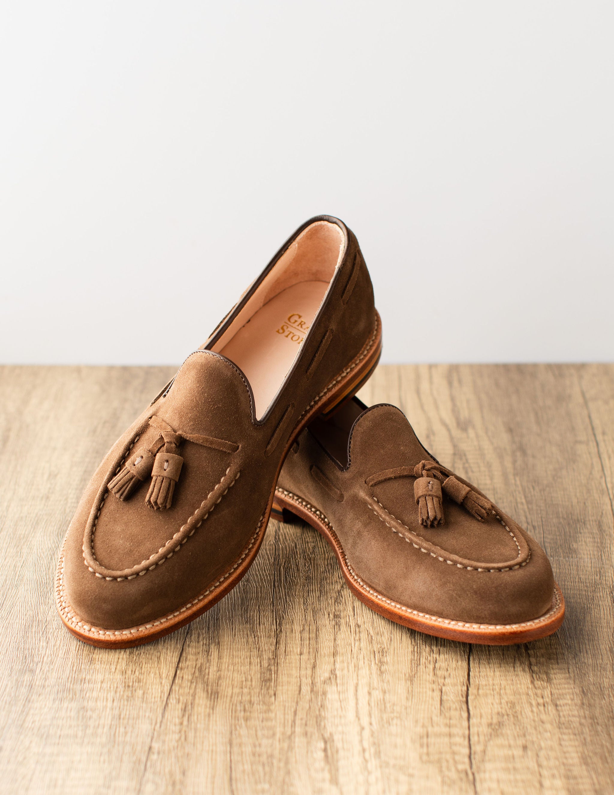 Crafted from Charles F. Stead's water-resistant Safari Repello calf suede, these Husk Suede Tassel Loafers offer a sophisticated yet relaxed aesthetic. The classic tassel loafer design is enhanced by the soft, luxurious suede and distinctive tassels, creating a refined look perfect for both casual and elevated ensembles. Combining effortless slip-on style with durable construction, these loafers are a versatile and elegant choice for any discerning individual, providing comfort and timeless appeal for any adventure.