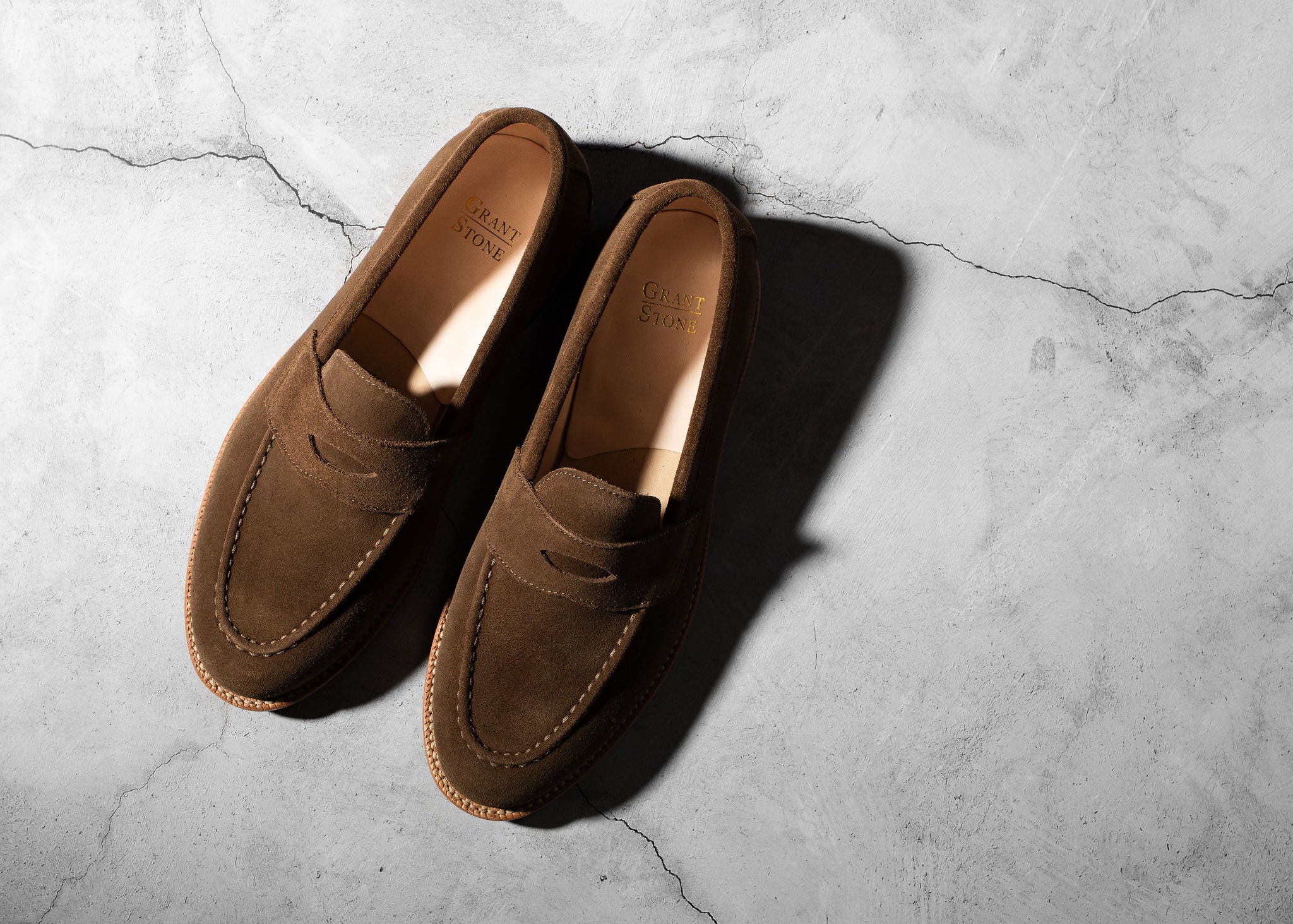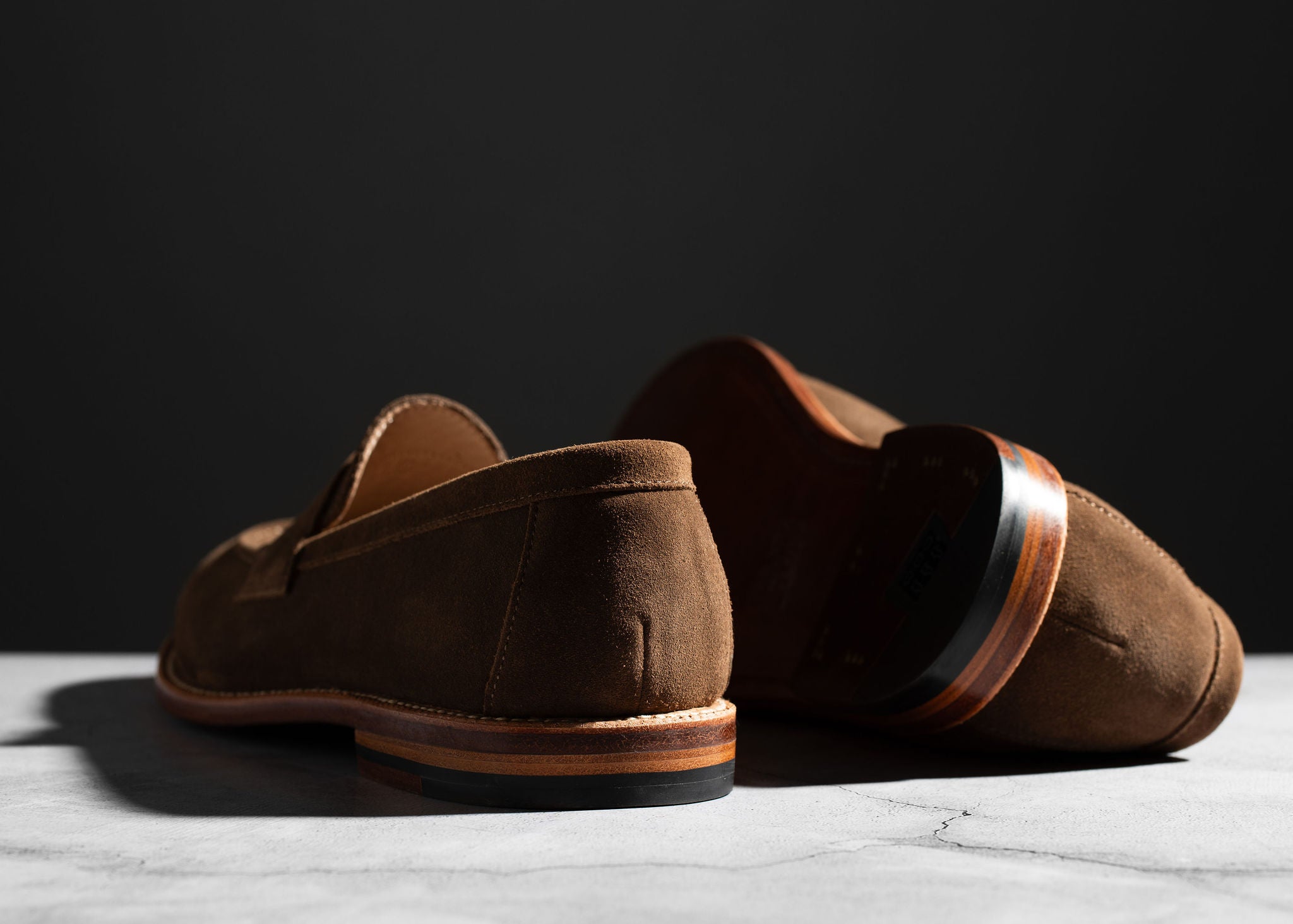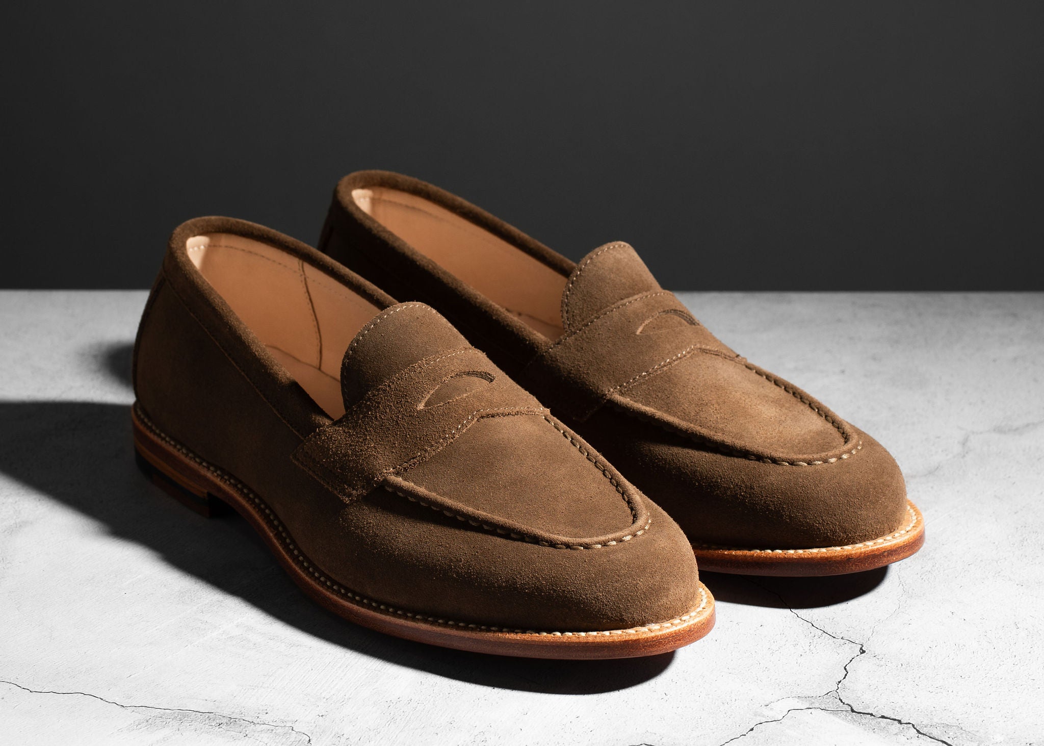Crafted from Charles F. Stead's water-resistant Repello calf suede, these Husk Suede Traveler Penny Loafers are an ideal choice for the modern-day explorer seeking both comfort and style. The classic penny loafer silhouette is elevated with the soft, textured suede and a streamlined design that makes them perfect for any casual or smart-casual occasion. Designed for versatility and ease, these loafers offer a refined aesthetic while providing the durability needed for your everyday journey, making them a timeless and essential addition to any wardrobe.